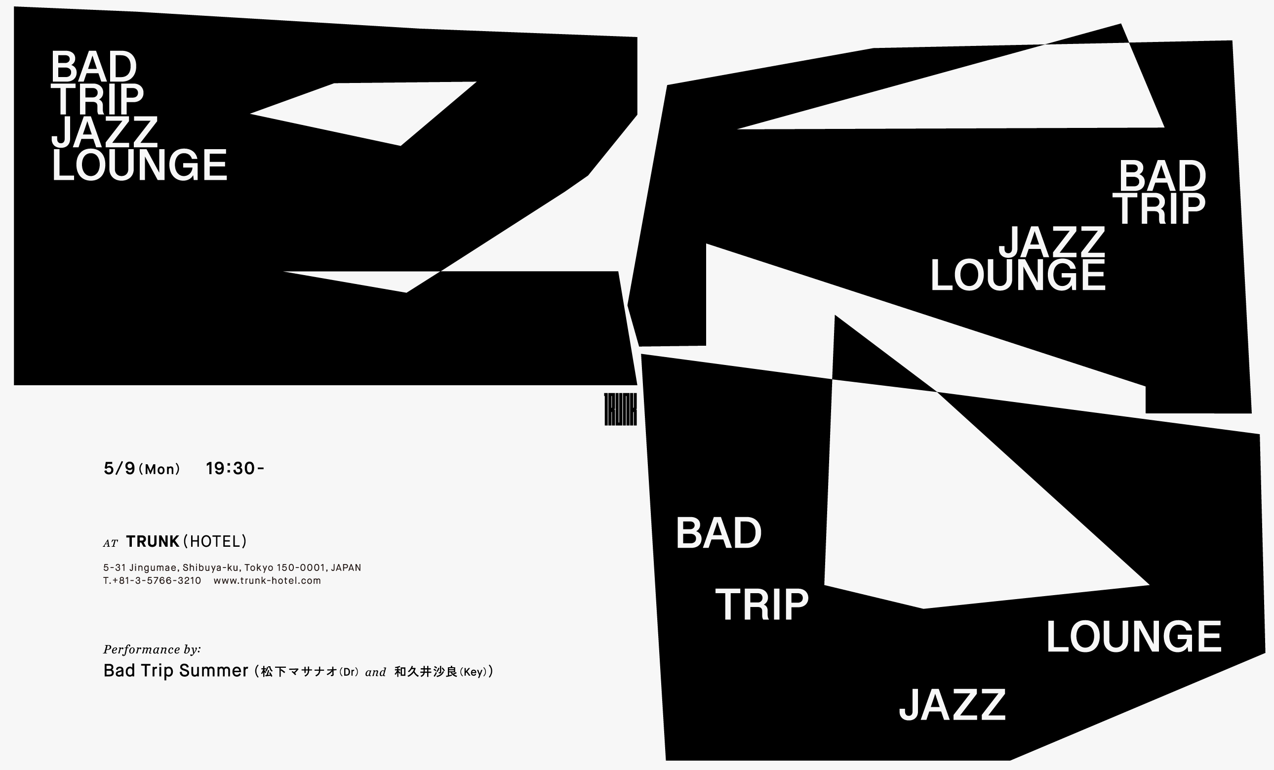 唯一無二のスタイルでシーンを牽引してきたドラマー松下マサナオと、注目を集めるの若手ピアニスト和久井沙良のユニット"Bad Trip Summer”によるInstrument Live@TRUNK(LOUNGE)。