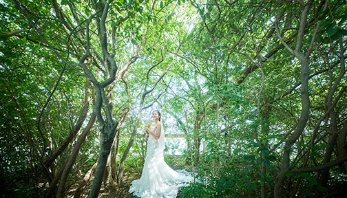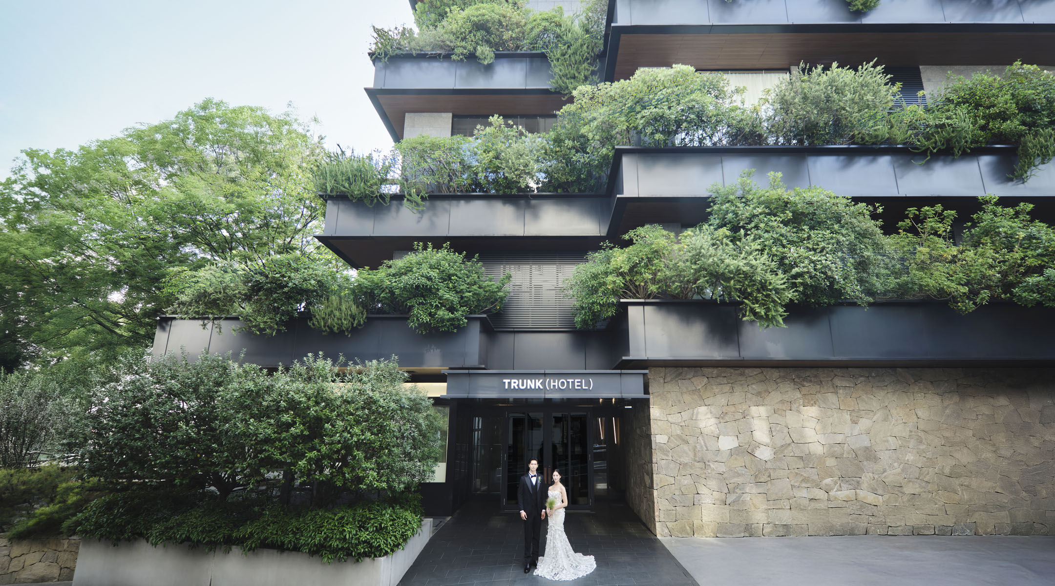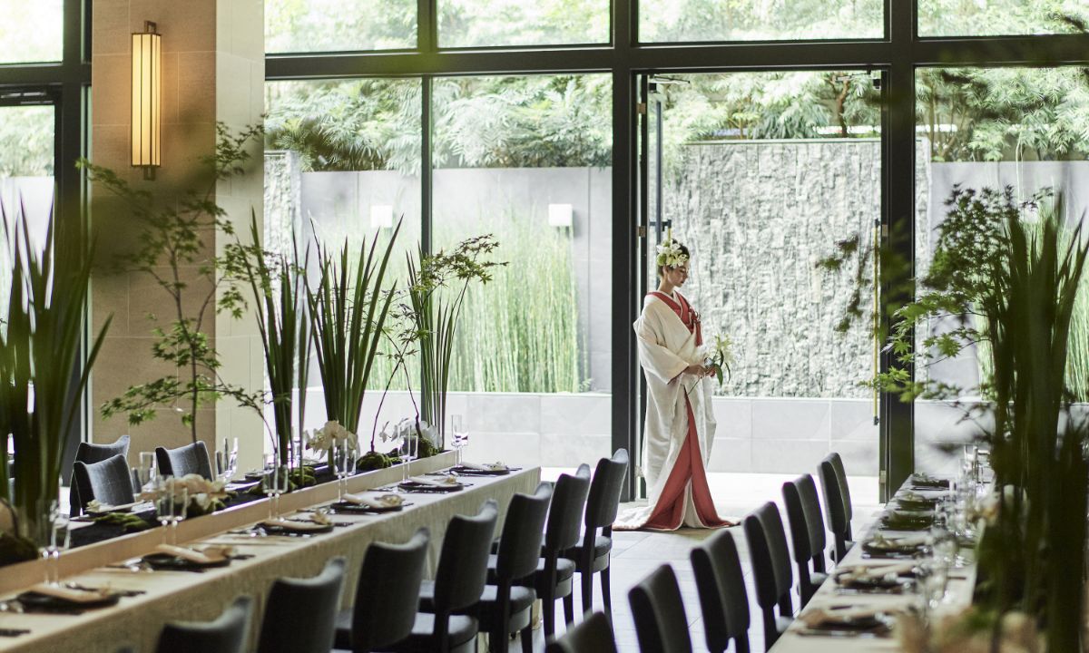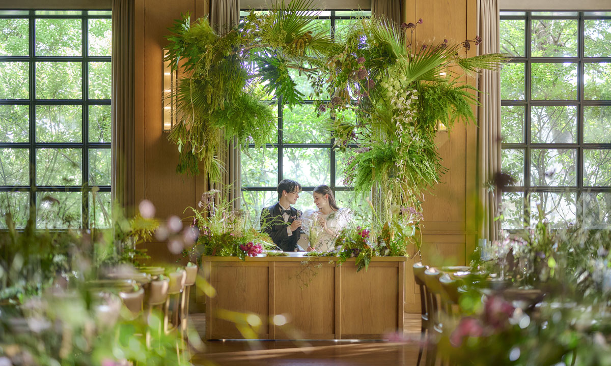 緑のぬくもりとガラスからの光と古材に囲まれた静かな空間が魅力的なフォトスポットとなっています。