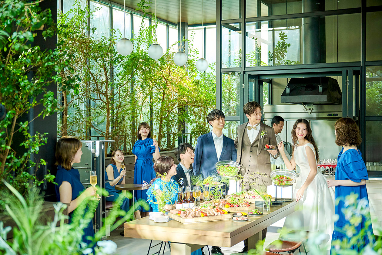 緑が心地良いテラスを自由に行き来しながら、ガーデンパーティのような雰囲気を楽しめます。