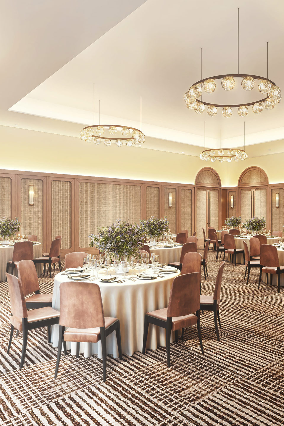 日本の伝統技術とモダンな感性が調和した、穏やかな空気が満ちるバンケットルーム